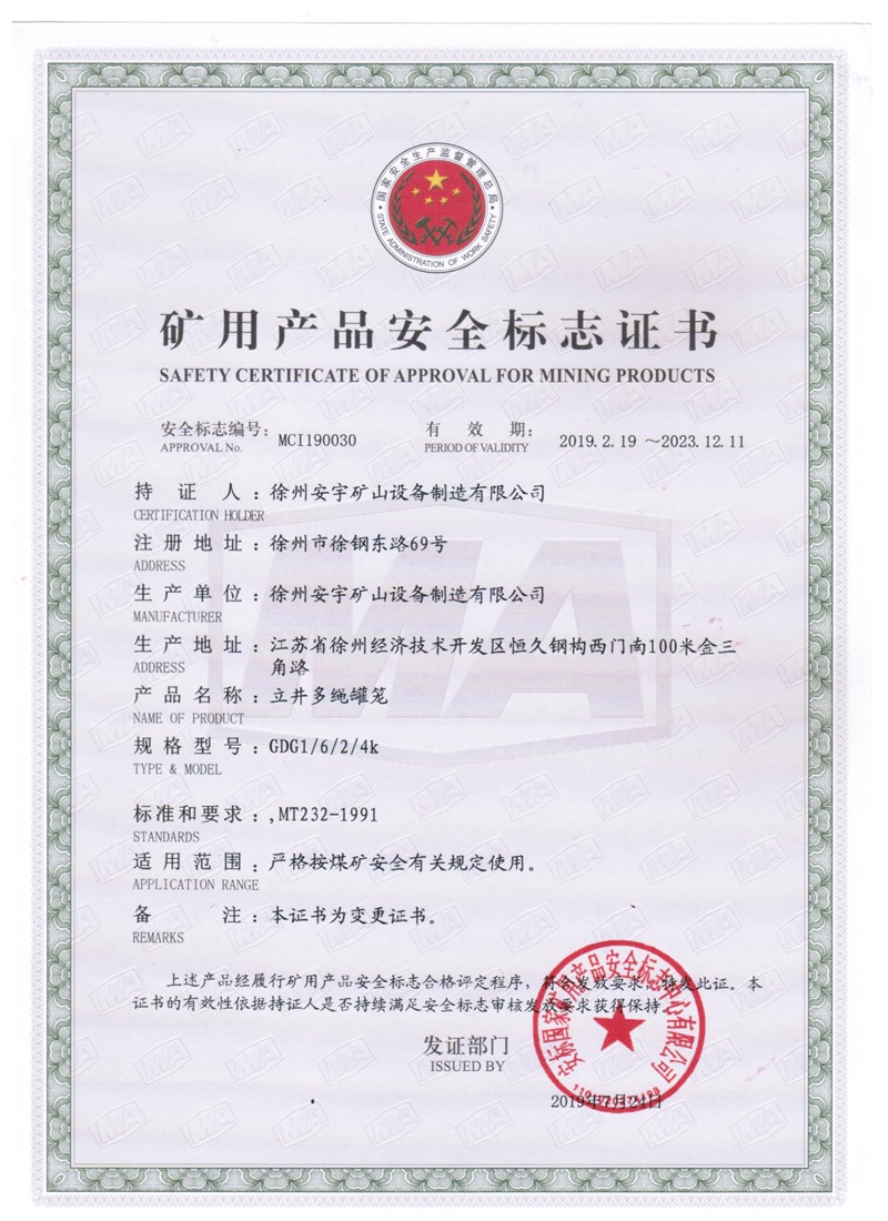立井多绳罐笼GDG1-6-2-4K